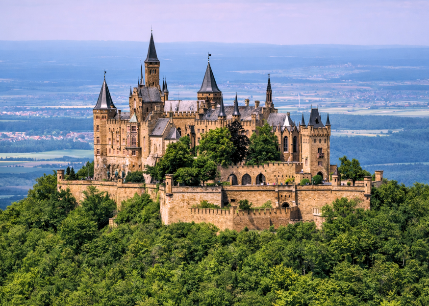 Hohenzollern Kalesi, sislerin arasından yükselen siluetiyle Almanya’nın en dramatik kalelerinden biridir. Prusya hanedanının sembolü olan bu kale, savunmadan çok güç, prestij ve hanedan ihtişamını yansıtmak amacıyla inşa edilmiştir. Yüksek bir tepe üzerinde konumlanan yapı, Avrupa’da romantik kale mimarisinin en etkileyici örnekleri arasında gösterilir.
