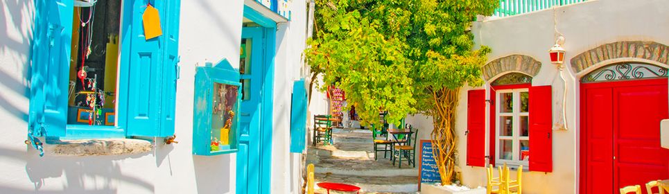yunan adasında pastelin tüm renklerini, rengin de